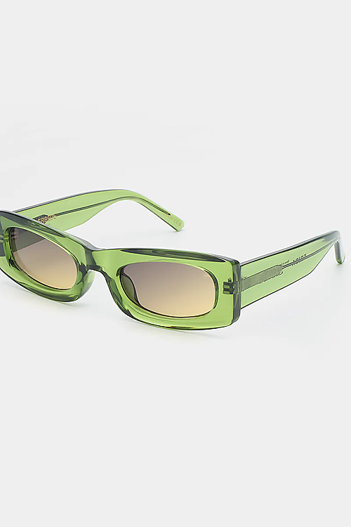 Diese grüne Sonnenbrille mit trendigem Farbverlauf-Glas vereint Style und Funktionalität. Sie verfügt über UV-400 Schutz und die Linsen bestehen aus robustem Polycarbonat – für optimalen Schutz und hohe Langlebigkeit. Perfekt für sonnige Tage und ein angesagtes Statement!
