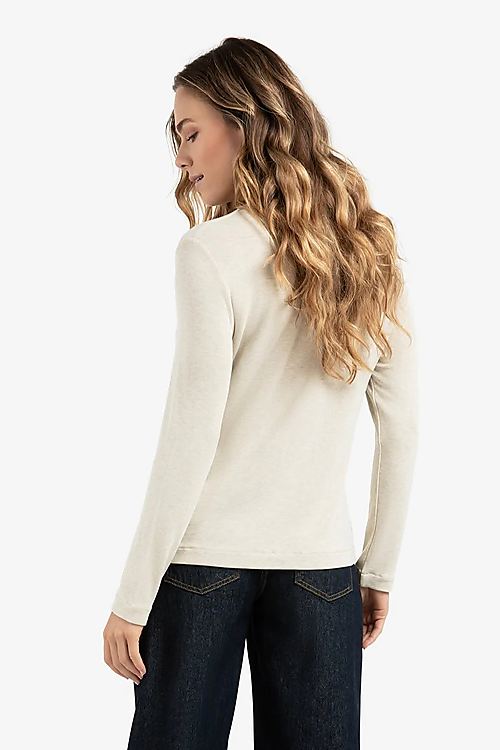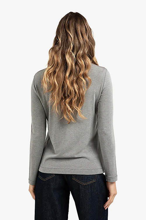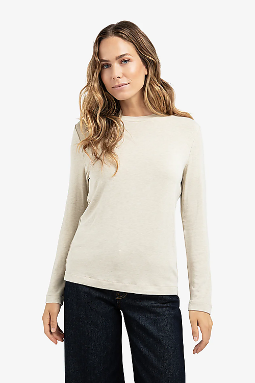 Dieses unverzichtbare Oberteil besteht aus robustem Jerseystoff, der sich weich anfühlt und seine schöne Form beibehält. Es hat einen Rundhalsausschnitt, lange Ärmel und eine gerade Passform. Das Oberteil lässt sich perfekt für sich allein oder an kälteren Tagen als Teil eines Lagenlooks tragen. Ein bequemes, vielseitiges Basic für deine Alltagsgarderobe