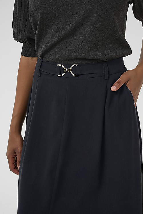 Weit geschnittene Hose mit lockerem Fall, hoher Taille mit Gürtelschlaufen, Bindeband vorn und Schlitz für mehr Bewegung.