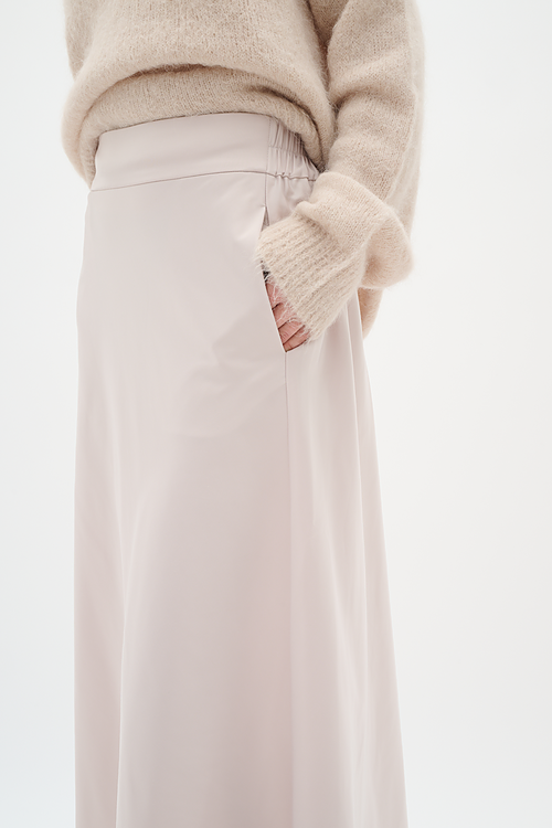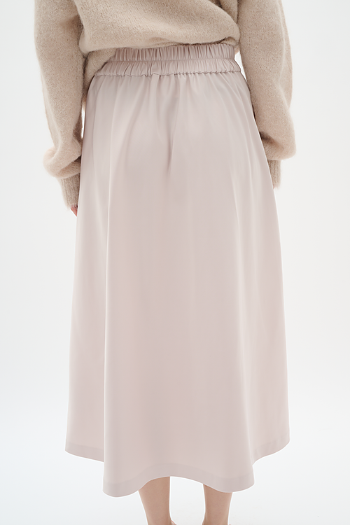 Das Satinjupe überzeugt mit einem fließenden Satin-Finish und einer femininen A-Linienform. Der elastische Bund sorgt für angenehmen Tragekomfort, während die schmeichelhafte Midi-Länge vielseitig kombinierbar ist – ob im Büro, zu besonderen Anlässen oder im Alltag. Der hochwertige Materialmix mit recyceltem Polyester bietet nicht nur ein angenehmes Tragegefühl, sondern setzt auch ein nachhaltiges Statement. Ein zeitloser Rock, der in keinem Kleiderschrank fehlen sollte.