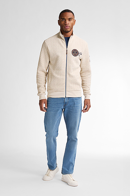 Die Sweatjacke vereint sportlichen Look mit praktischem Komfort für den Alltag.