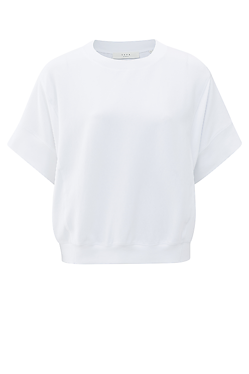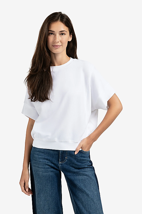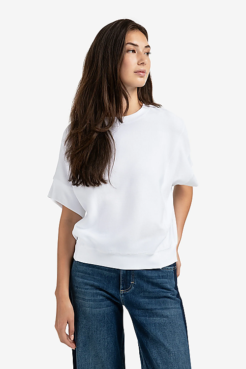 Dieses lässige Jersey-Oberteil hat kurze Ärmel, einen Rundhalsausschnitt, eine Oversize-Passform und gerippte Ränder. Es bietet einen entspannten, modernen Look. Der weiche Stoff sorgt für eine bequeme Passform, und der breite Saum verleiht der Silhouette auf dezente Weise Struktur. Ein leicht zu kombinierendes Kleidungsstück, das du an entspannten Tagen als Teil eines Lagenlooks oder solo tragen kannst.