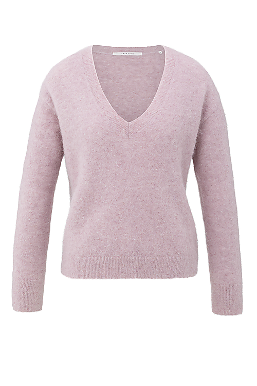 Dieser elegante Pullover besteht aus einer feinen Wollmischung mit weicher Struktur. Er hat einen femininen V-Ausschnitt, lange Ärmel und eine gerade Passform. Das dezente Finish an Ausschnitt, Bündchen und Saum verleiht dem Pullover eine raffinierte Note. Die perfekte Wahl, wenn du ein ebenso stylishes wie bequemes Kleidungsstück suchst.