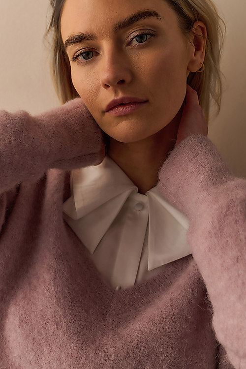 Diese Bluse aus glattem, leicht glänzendem Stoff begeistert mit ihrem von einer Schleife inspirierten Zierkragen. Sie hat lange Ärmel mit Manschetten, eine klassische Knopfleiste und eine gerade Passform. Ein zeitloses Design mit einer femininen Note.